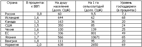 и эффективность государственной поддержки сельского хозяйства