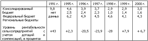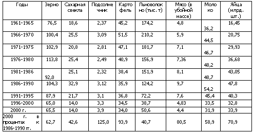 началу экономических реформ, выразившиеся в отставании агропромышленного