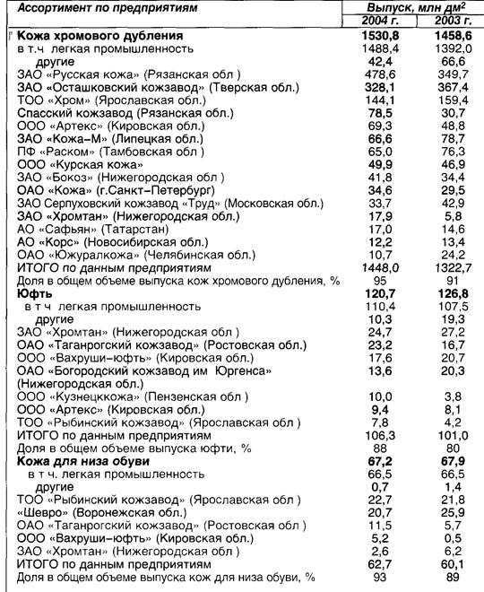 кожевников). Состояние и развитие кожевенно-обувной промышленности в 2002-2003