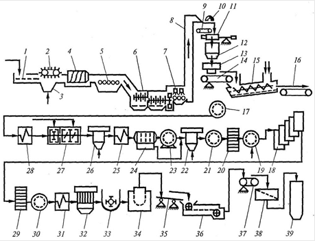 конвейер 37 и далее на вибросито 38. Комочки сахара отделяются,