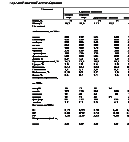 сортів пшеничного і житнього борошна наведені в габл. 2. У: для пшеничного