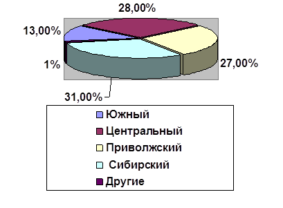 Центральный федеральные округа, доли которых занимают в общероссийском