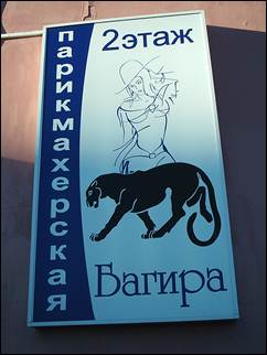 случае парикмахерская так и называется «Багира». На вывеске соседствуют пантера