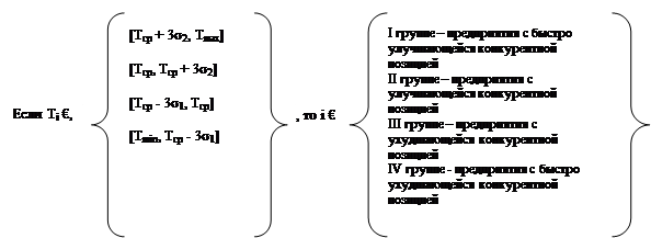 улучшающейся конкурентной позицией), наиболее слабым — предприятия 16-ой группы