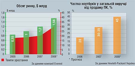 ноутбуків зростає значно швидше за сегмент десктопів. У 2008-му в грошовому