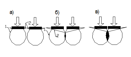 7.1 Взаємний вплив двох фундаментів а - напружені зони не перекриваються; б, в -