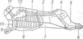 5 — грудинка (II сорт); 6 — рулька (III сорт); 7 — заріз