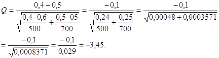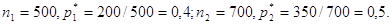 выборок совпадают и равны 500, то дисперсия разности частот равна
