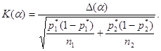 расхождения (в %) между частотами в двух группах в случае, когда наблюдаются